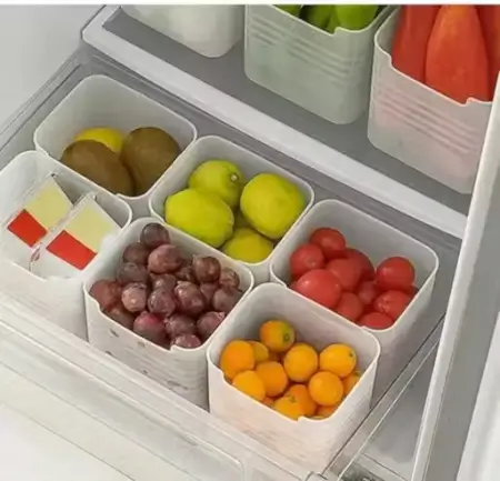 6 transparent plastic multipurpose fridge storage boxes, freezer safe, space-saving design ideal for fruits, vegetables, and kitchen organization…. Perfect for modern homes, gifting, and premium interiors.