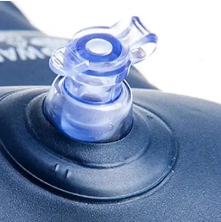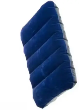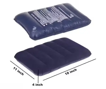 Portable, ergonomic inflatable air pillow for camping, backpacking, and travel; waterproof and comfortable.
