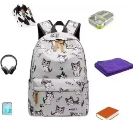 Synthetic bag with 2 compartments, printed pattern, free size (18" x 14"). Suitable for girls for tuition, college or school.