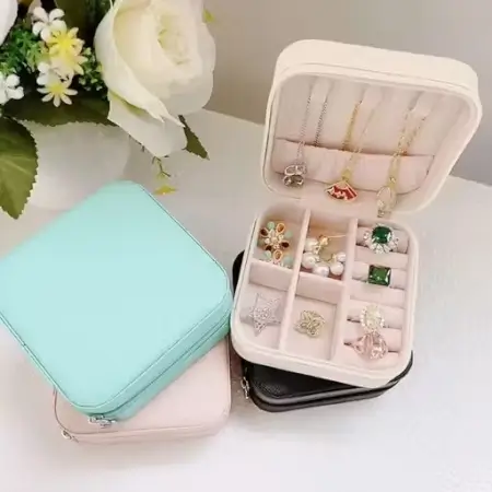 Portable PU leather jewellery organiser with zipper and six compartments, protects rings, earrings, necklaces. Multipurpose, splash-resistant, velvet-lined for scratch protection. Ideal gift for occasions.