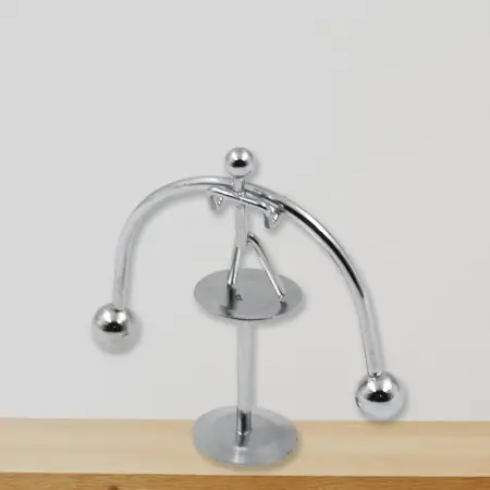 Desk Toy Metal Man Home Decoration Accessories Crafts Swing Time-The toy continue in perpetual motion for ONLY 2-3 minutes due to the resistance of the air and friction. As long as small iron man keep in same position, the weight of the two ball the same, the fulcrum position is unchanged. This metal balance man can help to relax your leisure time when in office