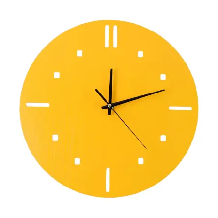 Modern Round Wall Clock Stylish and Silent Non-Ticking Decorative Timepiece for Living Room, Bedroom, Office, or Caf Easy-to-Hang Wall Mount Clock (1 Pc) Description :- Add a touch of modern elegance to your space with this eye-catching minimalist yellow round wall clock. Designed with clean lines and a bright finish, this clock combines style with functionality. Its silent, non-ticking mechanism ensures peaceful surroundings, while the contrasting black hour and minute hands provide excellent visibility. Lightweight and easy to install, its perfect for anyone seeking an understated yet vibrant wall accent. Key Features :- Sleek and stylish round wall clock in vibrant yellow finish Silent non-ticking quartz movement for noise-free timekeeping Contrasting black hands for clear visibility from a distance Durable lightweight construction with smooth finish Modern design with square and dash hour markers Easy to mount includes back hanging hook Battery-operated (AA battery not included) Ideal For :- Living rooms Office walls Bedrooms Cafs or modern studio dcor Hallways and entryways Minimalist interior themes Specifications :- Product Name: Round Wall Clock Shape: Round Material: High-quality plastic Wooden Display Type: Analog Movement: Quartz Non-Ticking Power Source: 1 x AA battery (not included) Mounting: Wall-mounted (hook on back) Package Includes: 1 Pc Wall Clock Keywords :- wall clock, timekeeping device, analog clock, home decor clock,office wall clock, living room clock, round wall clock, no-number clock,designer wall clock Dimension :- Volu. Weight (Gm) :- 1002 Product Weight (Gm) :- 424 Ship Weight (Gm) :- 1002 Length (Cm) :- 32 Breadth (Cm) :- 31 Height (Cm) :- 5