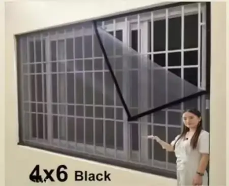 Black polyester mosquito net suitable for 4x6 feet windows. Durable, washable, frame-hung design with easy installation. Provides effective insect protection for homes and offices.