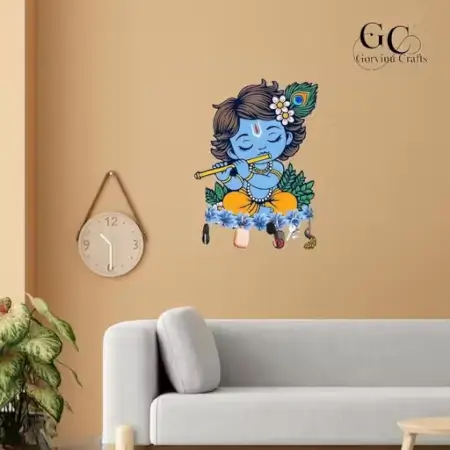 Premium wooden wall-mounted key holder set with vibrant Little Krishna design. Combines spiritual aesthetics with practical key organization for home … Perfect for modern homes, gifting, and premium interiors.