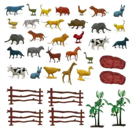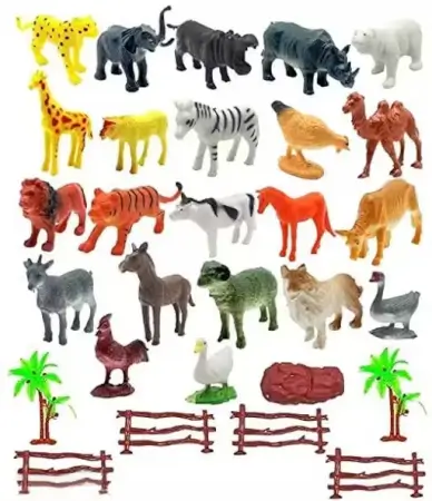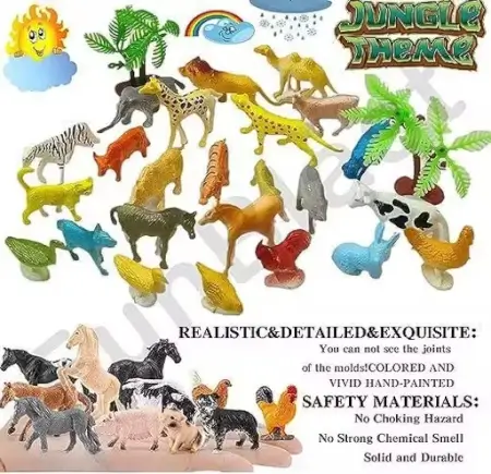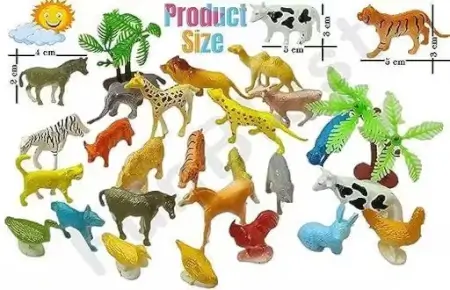 Set of 30 colorful mini animal figures made of flexible rubber for learning and pretend play.