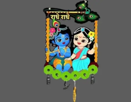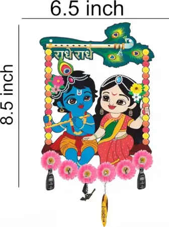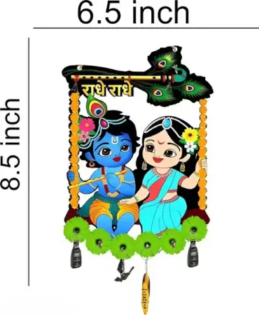 Spiritual 2-piece wooden wall key holder set with Radhe Radhe Krishna theme and peacock feather motifs. Combines devotion and function in one beautifu… Perfect for modern homes, gifting, and premium interiors.
