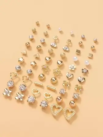Combo of 30 stylish gold-plated studs with pearls and cubic zirconia, perfect for all occasions. Lightweight and hypoallergenic.