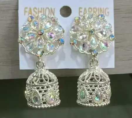 Enhance your ethnic and festive look with these elegant Silver Jhumka Earrings. Crafted from high-quality silver with a silver-plated finish, these jhumkas feature beautiful artificial stones for a stylish appeal. The adjustable sizing ensures a comfortable fit for all. Perfect for parties, weddings, and casual occasions, these earrings add a traditional touch while remaining lightweight and easy to wear.