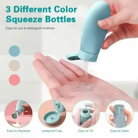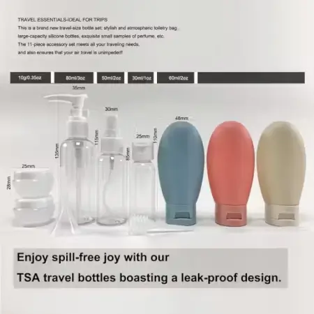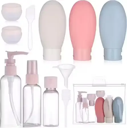 10-piece travel bottle set for toiletries, leak-proof, squeezable silicone containers in multicolor, suitable for shampoo, lotion, body wash…. Perfect for modern homes, gifting, and premium interiors.