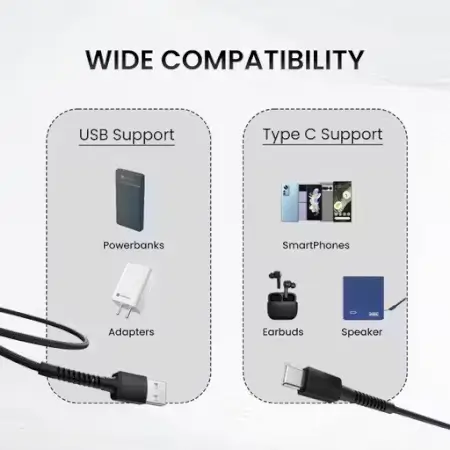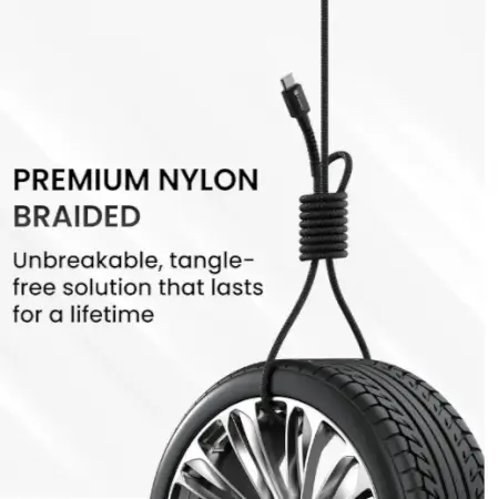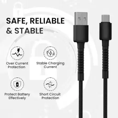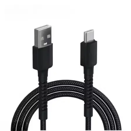 1-meter nylon braided Type C cable with 3A output, fast charging, and data transfer. Compatible with all Type C devices.